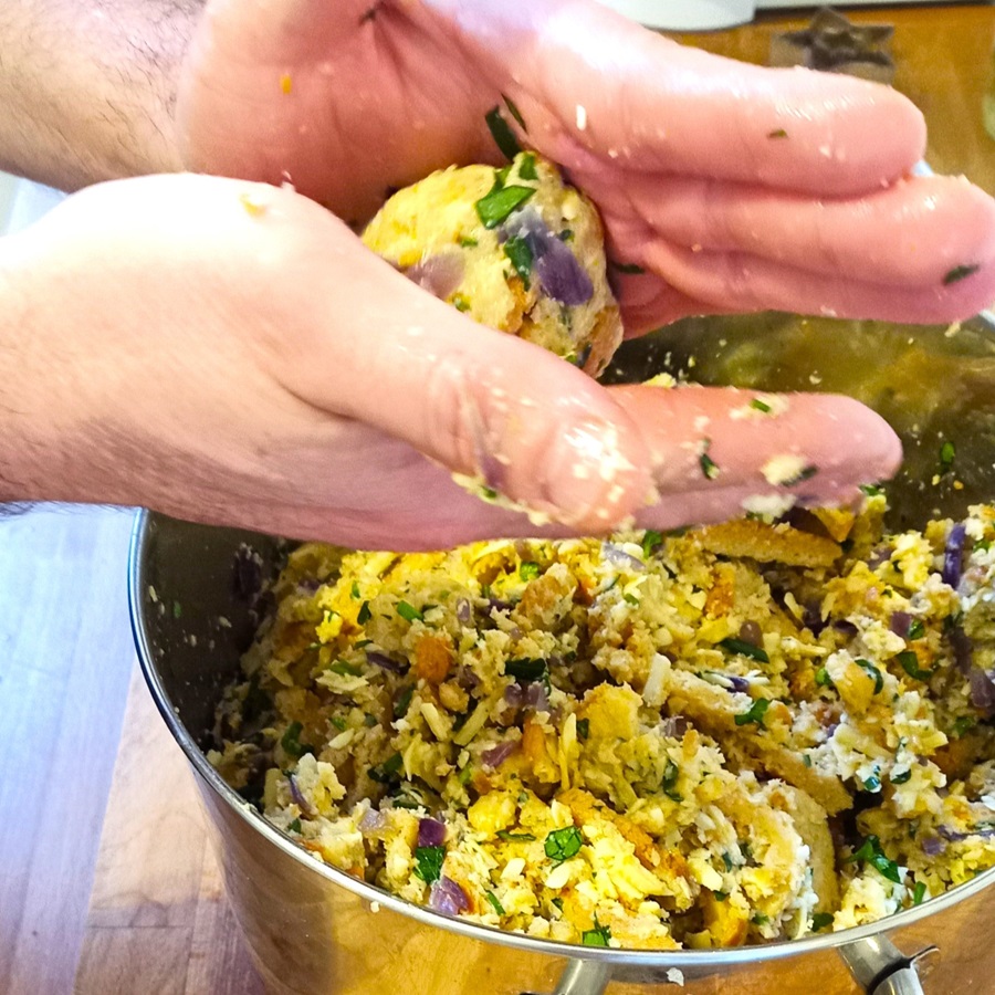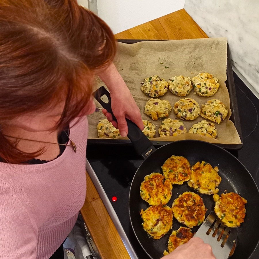 Mit viel würzigem Bergkäse selbstgemacht, von Monsieur persönlich geformt, dann angebraten & frisch angerichtet mit buntem Kräutersalat! 😘🐰🧀