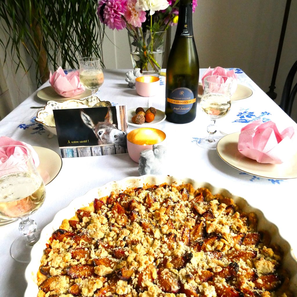 Das wird gefeiert mit einer lauwarmen tarte aux quetsches. Garniert mit Walnuss-Rosmarin-Streuseln und frisch geschlagener Sahne ein Hochgenuss 🥂